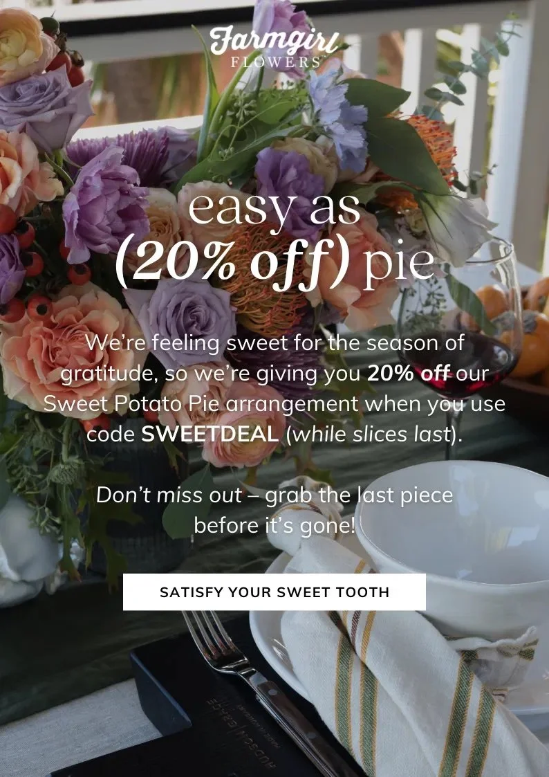 Hey, Sweet Potato! Grab a slice of 20% off while you still can